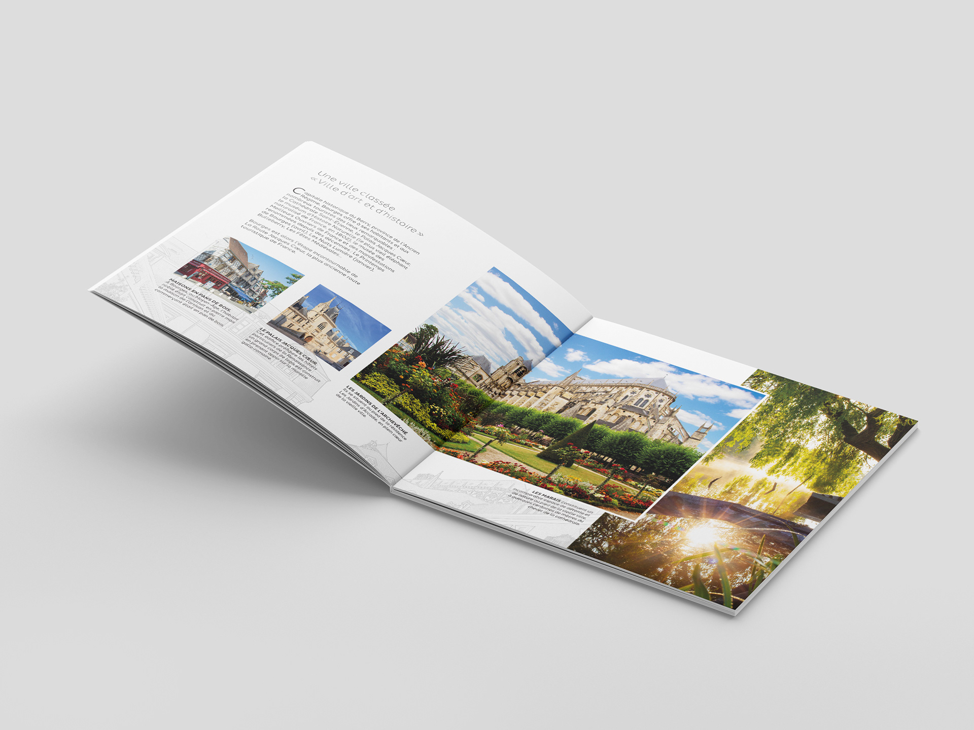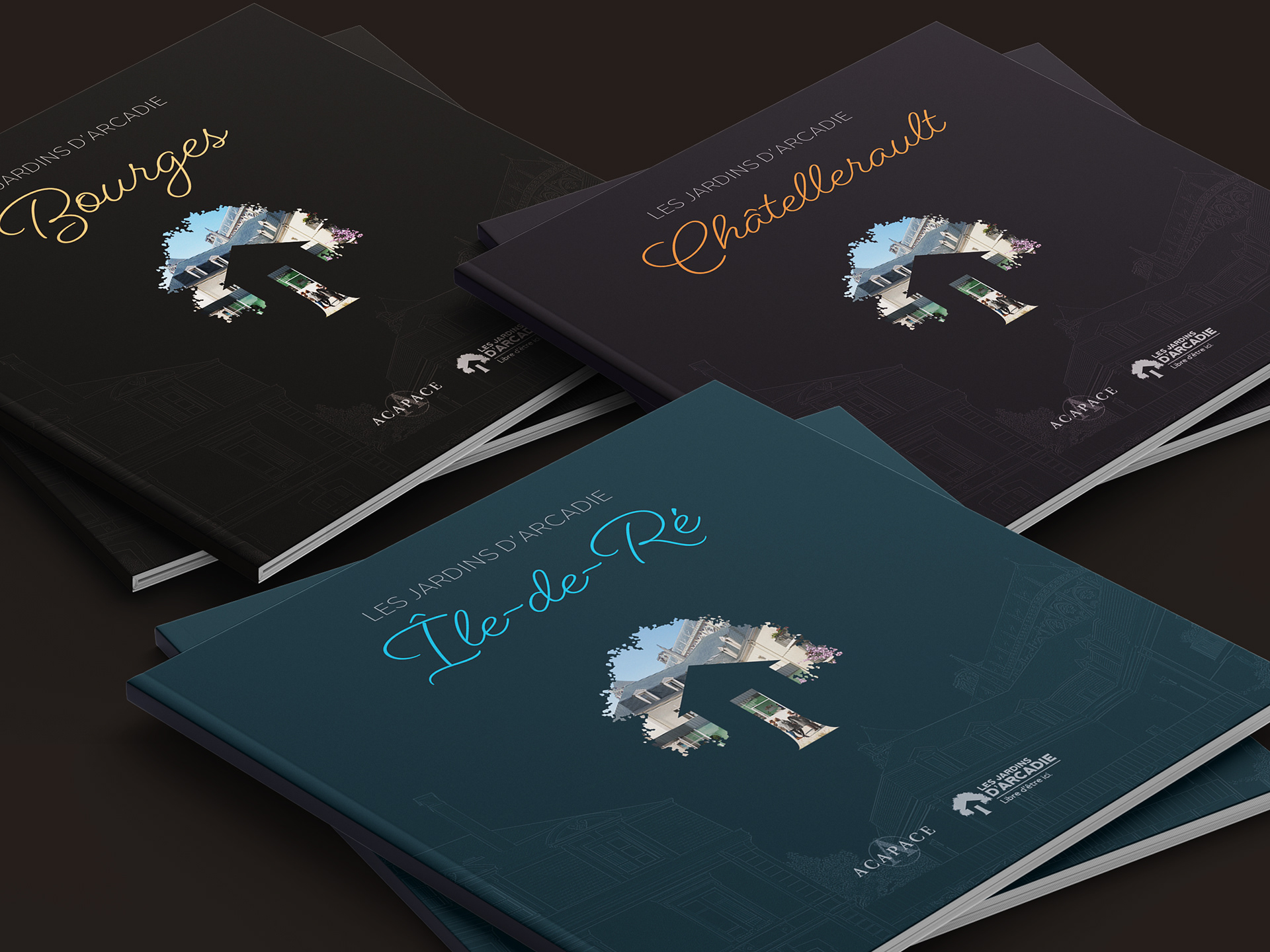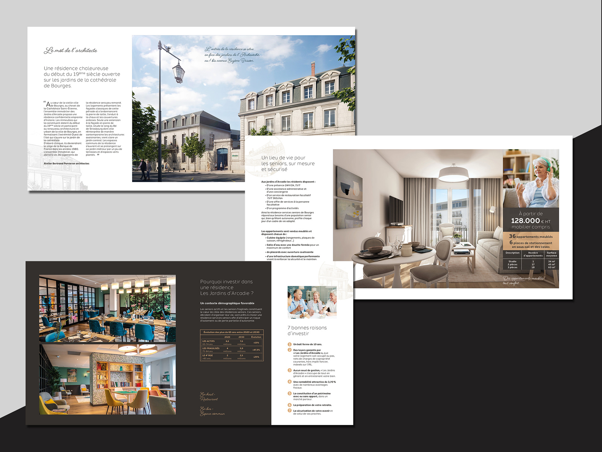 Réalisation d'une plaquette promotionnelle pour des investissements immobiliers à Bourges pour Les Jardins d'Arcadie, groupe ACAPACE (2018-2023).