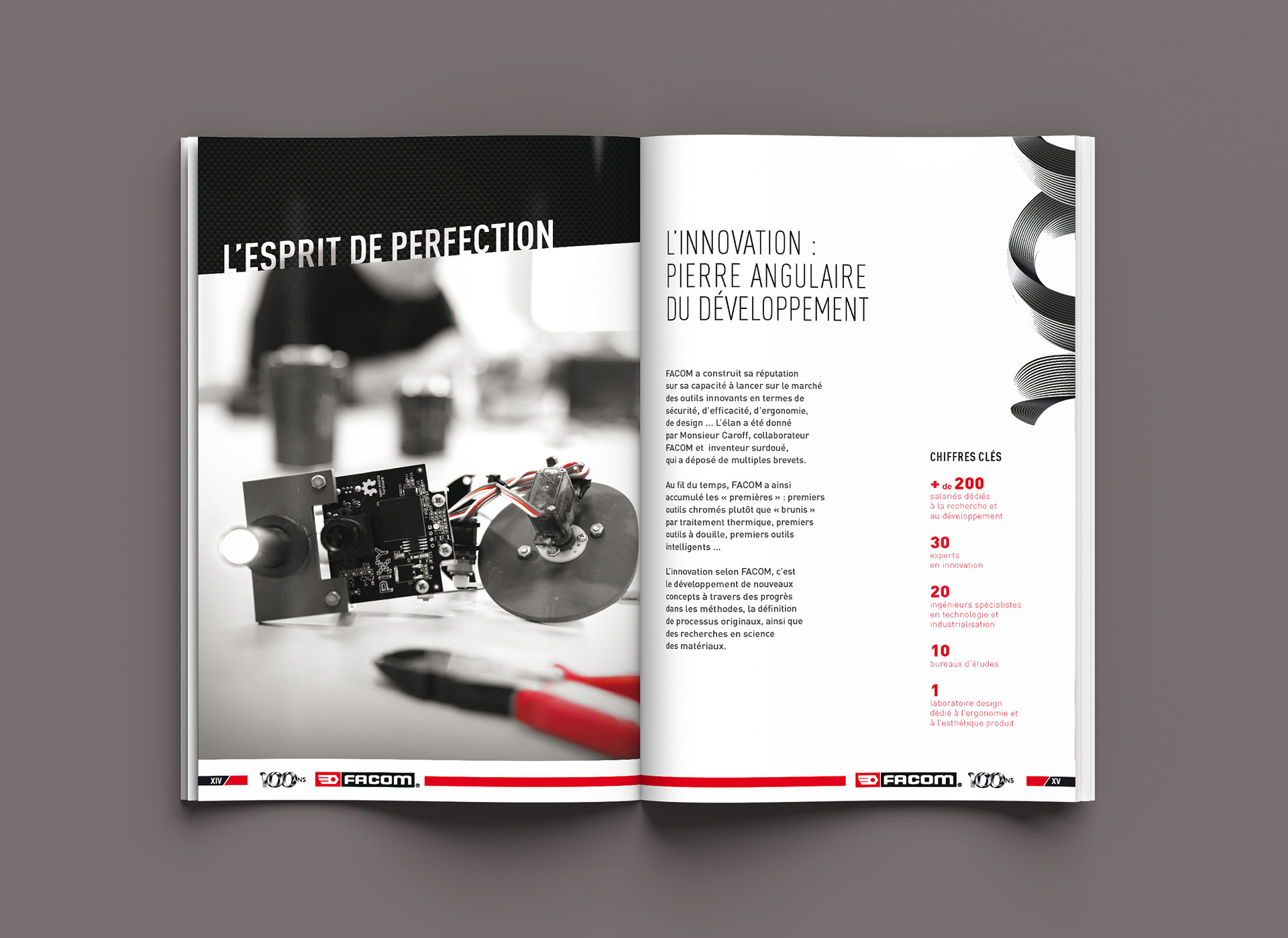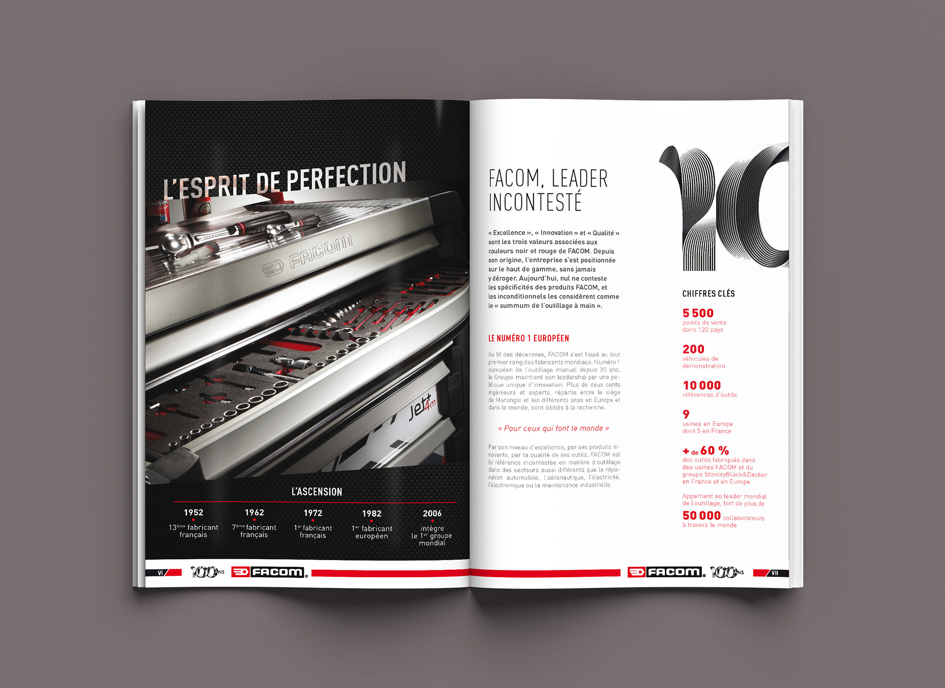 Pour les 100 ans de FACOM, conception et réalisation du cahier "Célébration" intégré au catalogue produits