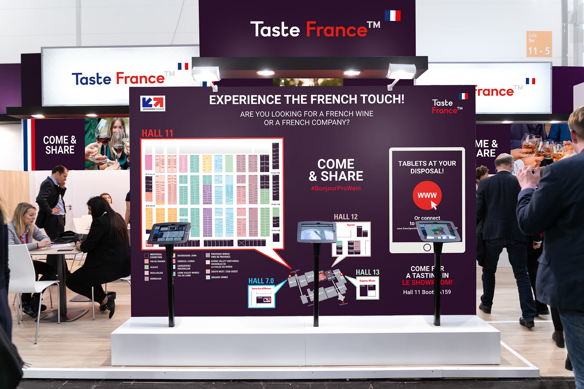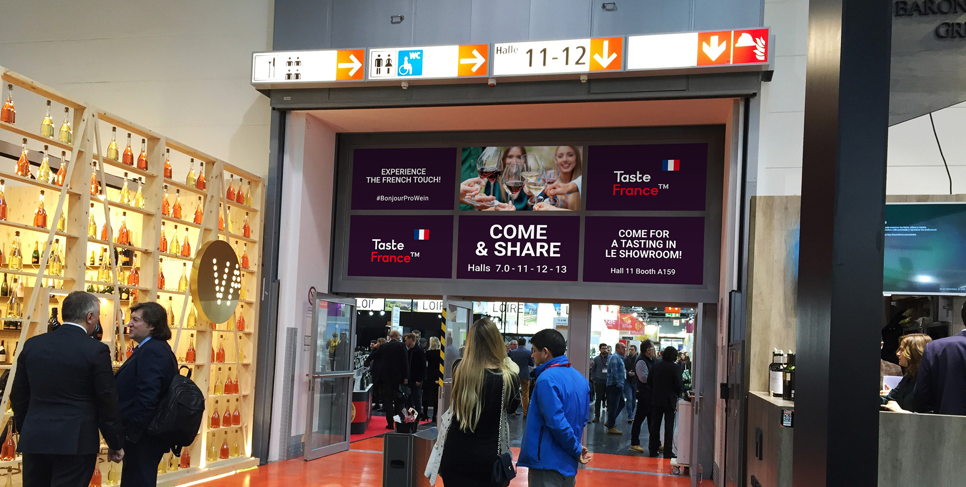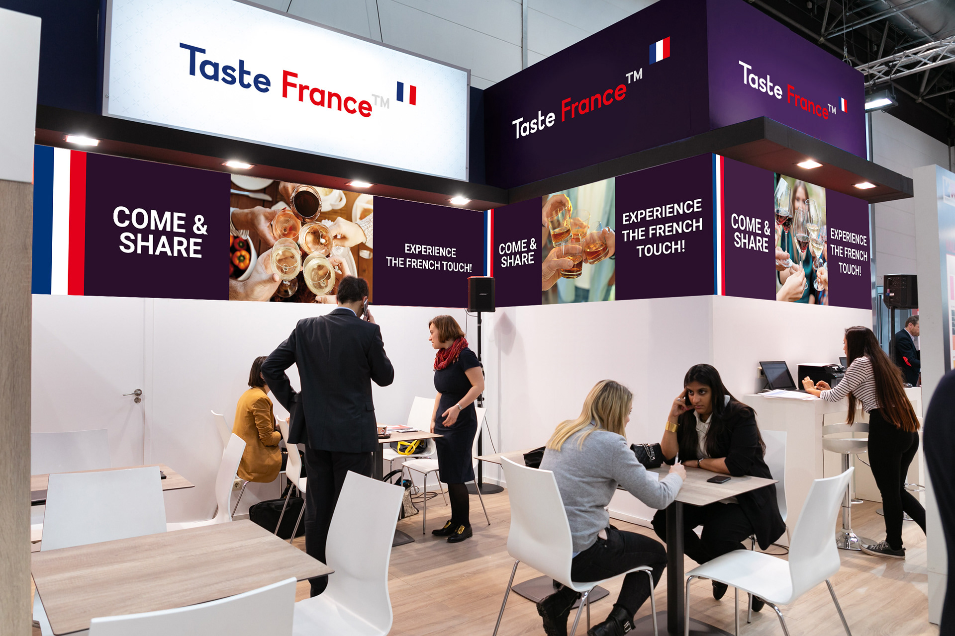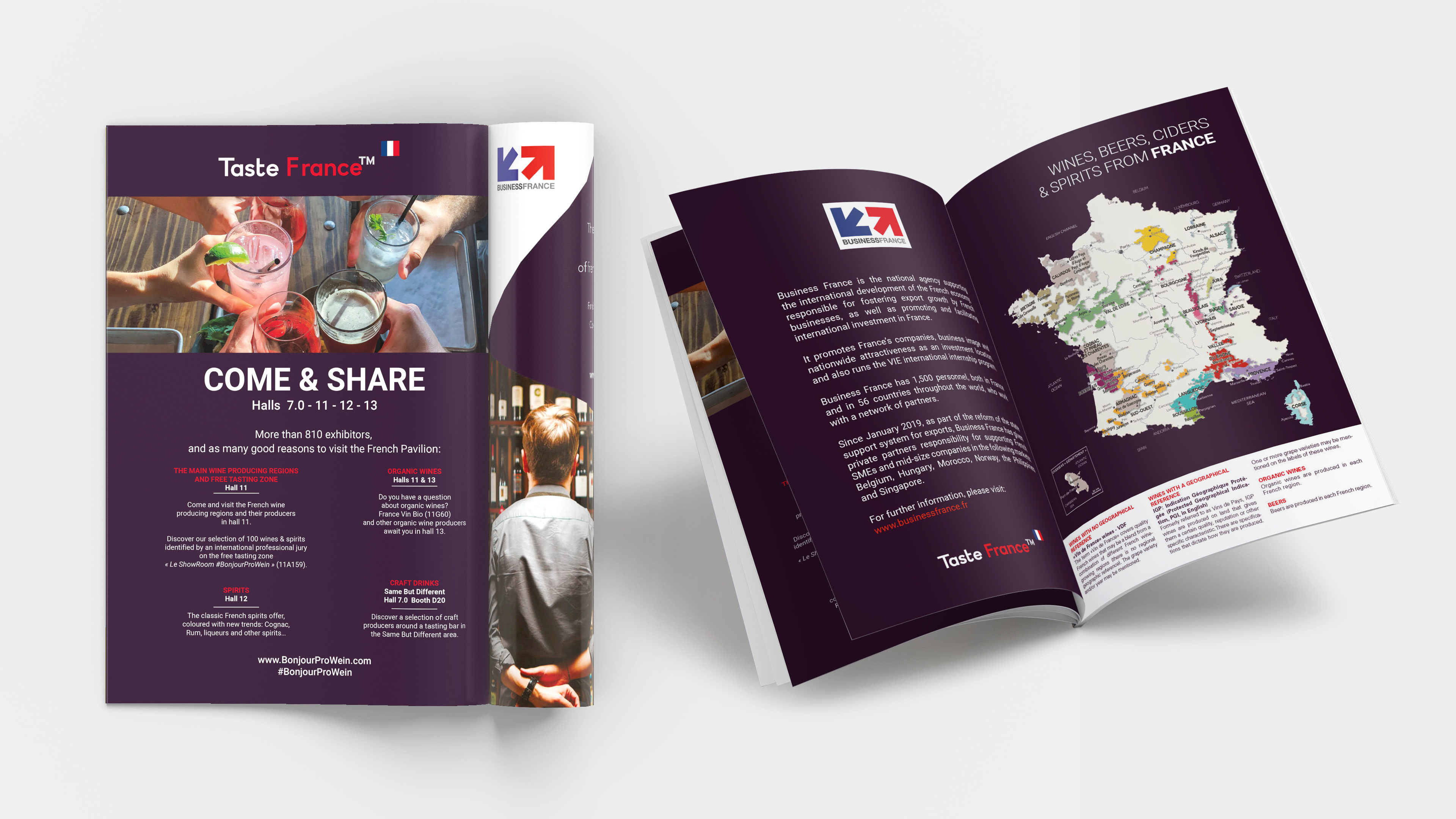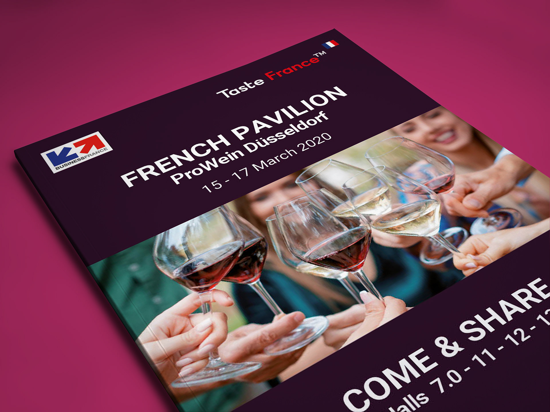 Développement de l'identité Taste France pour le "non-évènement" Prowein en mars 2020, avant le redémarrage en 2022 et 2023. Affichage - Invitation - Pub magazine - Livret d'accueil - Bannières web - etc.